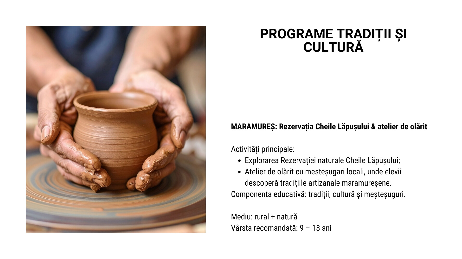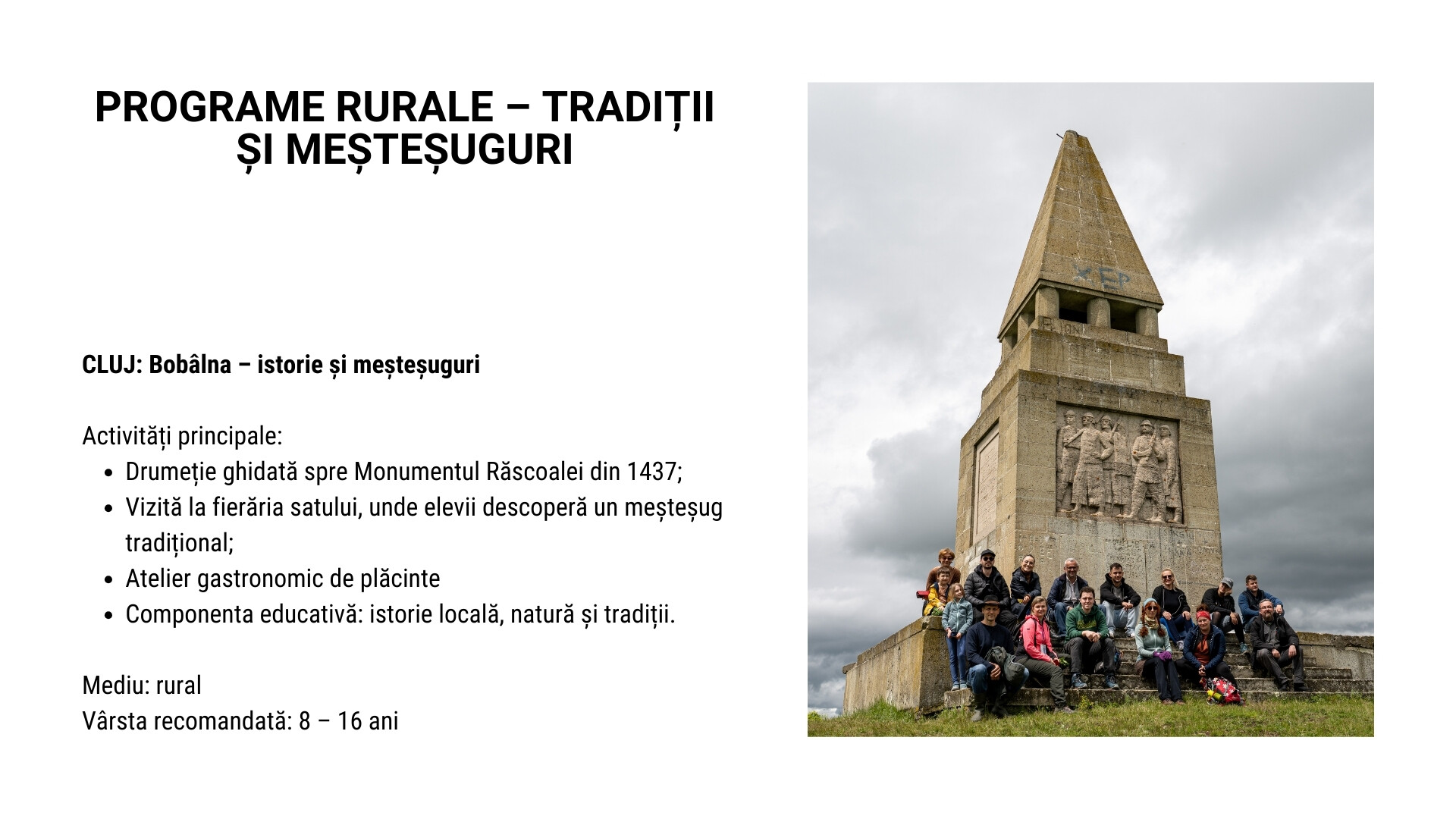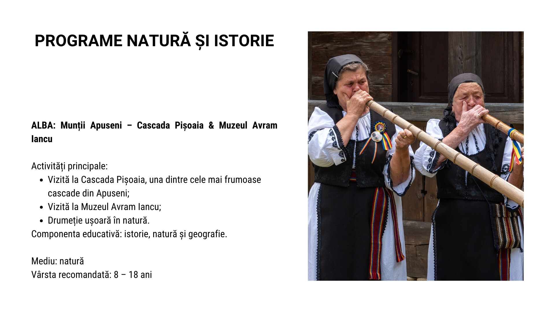 Programele se pot personaliza în funcție de durata dorită, punctul de plecare, vârsta elevilor și obiectivele educaționale, combinând vizite culturale, activități în natură și experiențe interactive.