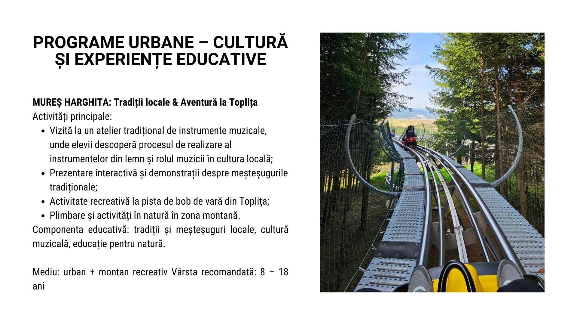 Programele pot fi adaptate sau combinate în funcție de locația de plecare a școlii, pentru a optimiza traseul și experiența educativă.